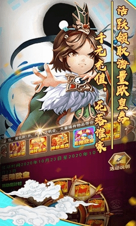 九州霸业欧皇无限充版是一款国战题材类手游,极品红将签到就送,百种阵容随心搭配,完成任务,每日抽取大额充值卡,轻松解锁无限商城特权,采用Q版游戏风格构建热血对战世界,感兴趣的玩家快来街机中国下载吧!