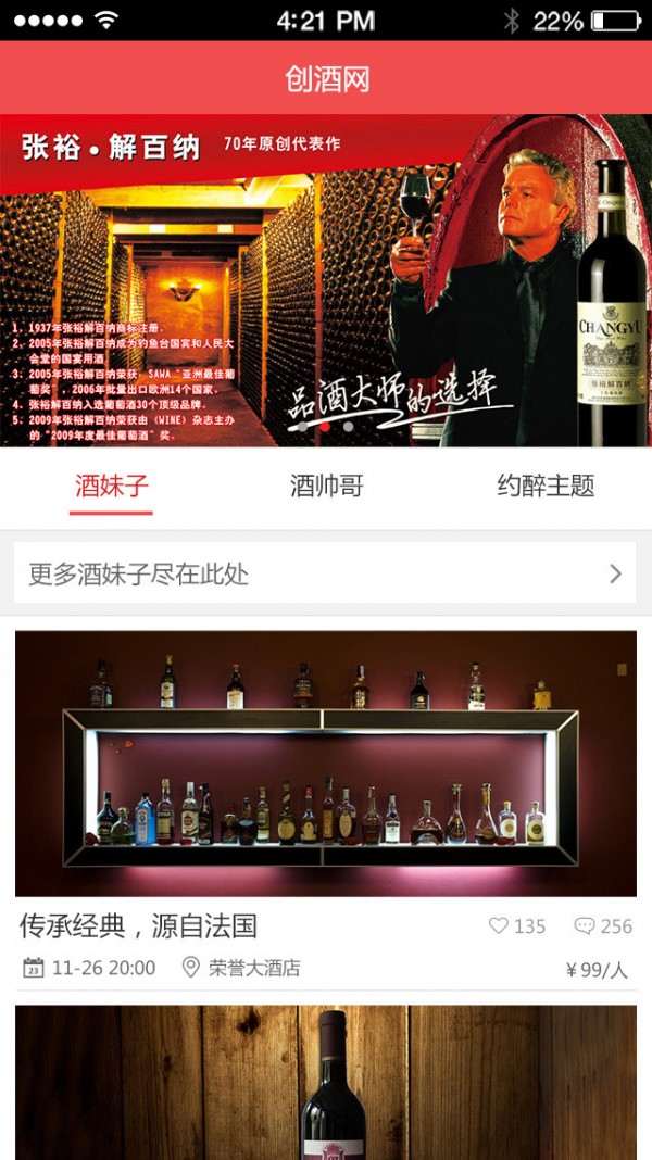 创酒网app,实现在小区域范围内(例如在某个市中心)进行酒类产品在线下单购买服务,集成了商品、订单、物流配送、财务、分享返利、酒文化宣传、酒社交等功能,并通过传统互联网和移动互联网(微信、APP)等形式进行传播、分享推广,打造酒类产品垂直领域的专业电子商务平台。