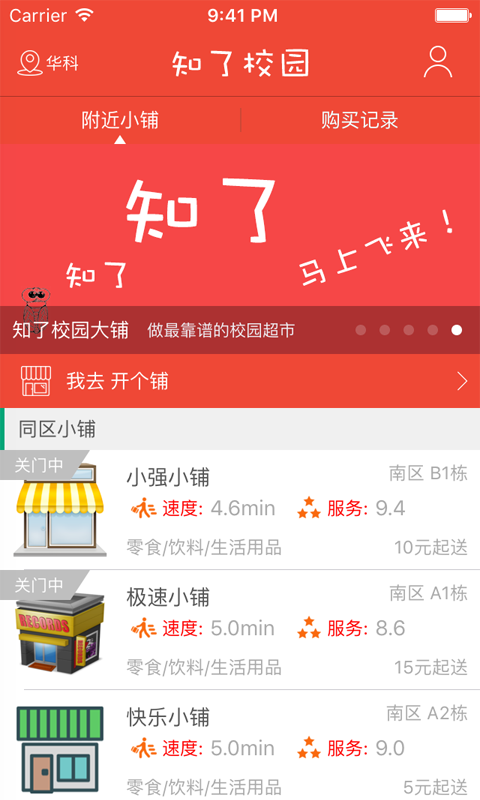 知了校园app是一家有态度的校园超市平台,如果您是学生,可以随时在里面购买零食,饮料以及生活用品,我们将在五分钟内飞到您的床边,随叫随到,不论白天黑夜刮风下雨!
