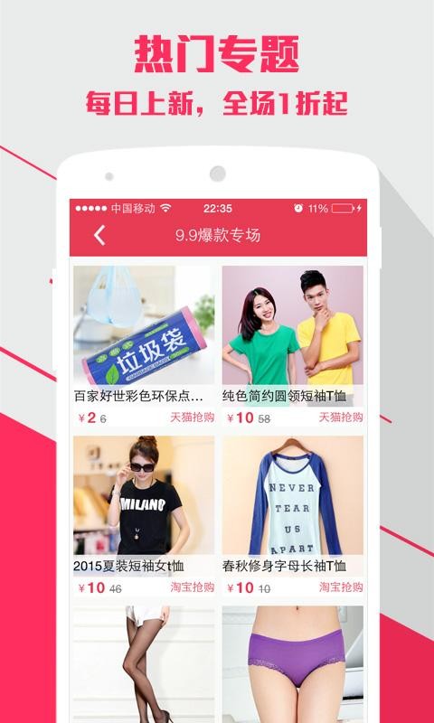 美包街app是一款购物类的软件,美包街app带你了解淘宝天猫的折扣宝贝和优惠内容,对于喜欢购物的朋友来说非常的不错。