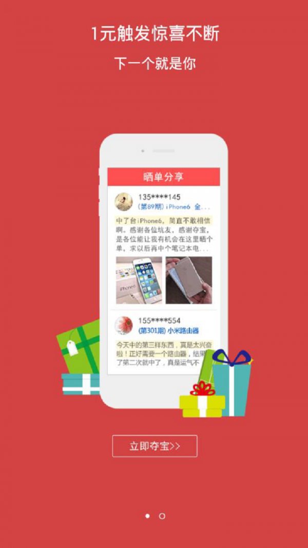 猫儿夺宝app是一款1元云购平台,全场数码产品,只需1元即可参与一元购物,对你没有听错现在下载猫儿夺宝app,用大伙的力量实现你心中的梦。