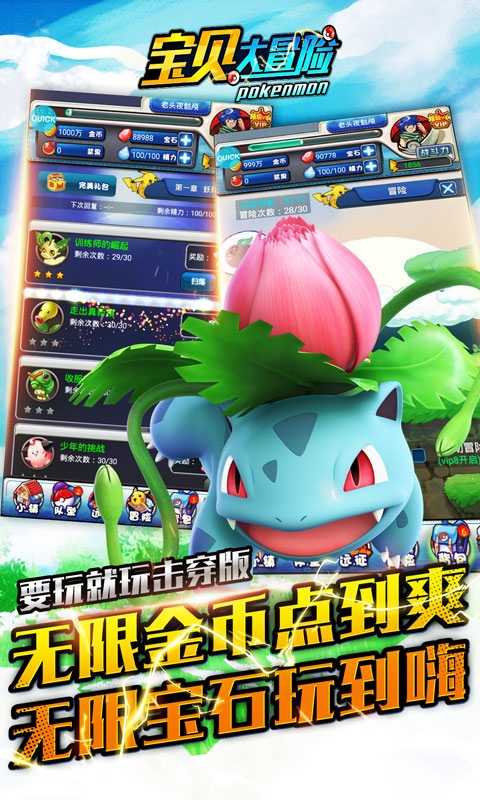 宝贝大冒险是一款以动漫风格描绘的冒险战斗类游戏,游戏有着超高清的画面质感,别具一格的场景设计,众多数码宝贝汇聚至此,丰富的道具用法和技能特效等你来体验,召唤出你的精灵,搭配好阵容后和黑暗势力作战,成为最强召唤师,你还在等什么?快来下载体验一下吧!