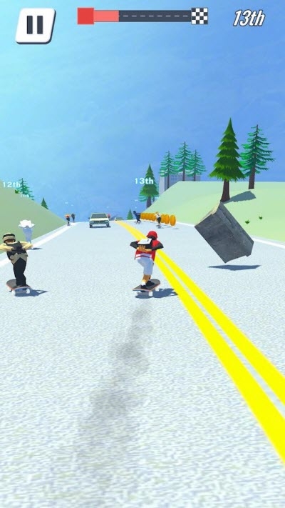 加速道具可以让你快速的冲向终点,躲避更多的障碍以及危险,展现你玩滑板的技巧,您可以突破更多的障碍,并且可以不断地在各个层面上解锁更多激动人心的挑战。
