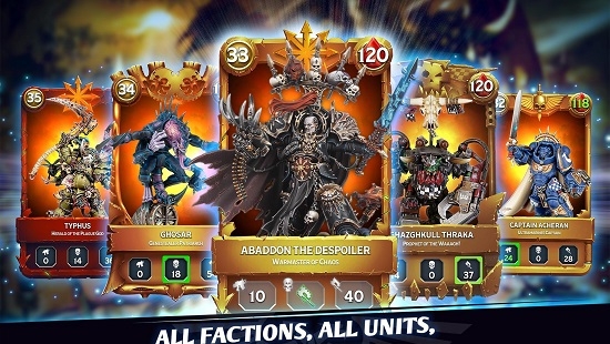 创建你的战锤40k战斗卡牌:使用你的积分围绕你的标志性战锤战将建立一支军队,并在回合制策略游戏(PvP)中挑战其他玩家。
