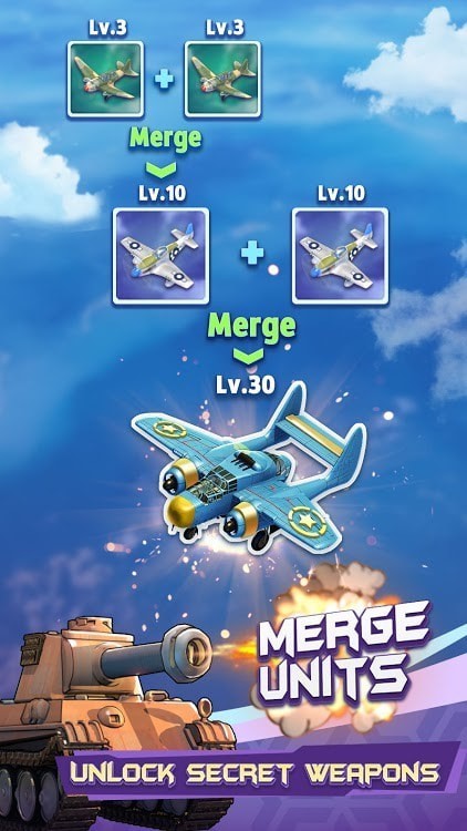 超级防御合并战争游戏是一款将多种游戏元素融合在一起的休闲益智类塔防游戏,在玩家可以收集各种各样的飞机大炮,通过放置合成的方式来使他们的等级得到提升,以及获取更多的金币,让后用这些飞机大炮,去进行防御,挡住敌人的攻击,每一次的胜利更是有着丰厚的奖励等待着你!
