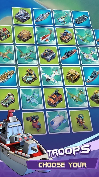 游戏画面设计的很卡通玩家可以自行建造自己防御建筑,布置自己的武器设备以及兵力部署,通过战争玩家可以得到不同的道具加强自己的防御工事,提高攻击能力去打击别人,塔台的建造也需要从别人那里抢夺的金币来维持升级。