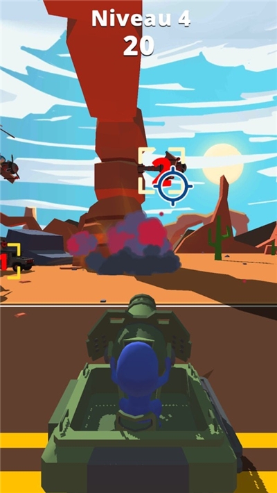 3、带领战场歼灭敌人,调准正确的射击角度,在场地中射击敌方坦克,消灭一切!