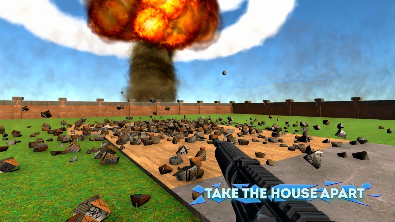 具有可破坏环境的游戏。用武器破坏家庭室内装饰并享受破坏的影响。
