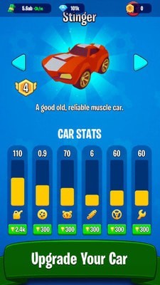 将您的汽车带到赛道上,与您的对手比赛以获得更多奖励!您甚至可以在明亮多彩的有趣赛道中与老板比赛,赢取大奖以改善您的车库!