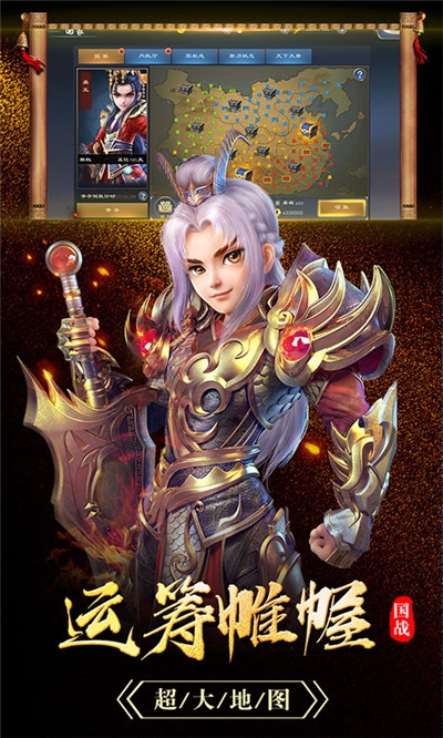 天下大势,合久必分,分久必合。梦回三国之时,你是否想过自己成就一番宏图霸业?这一次为你还原乱世之景,这里有独特的国战让你施展谋略,更有百余知名武将随你征战沙场。武将缘分、武将突破、兵种培养等多维度培养方式让你手下的武将快速成长!收集材料晋升官职,更有缘分技能上阵助您实力超群;多重策略争霸玩法,多种社交情缘玩法,与敌国对手的一较高下,开拓您专属的霸主之路!