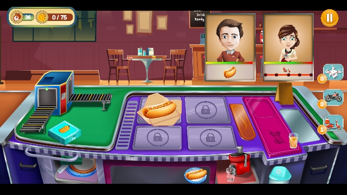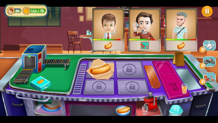 在这款游戏中玩家们将会尝试去享受一场场颇为有趣的美食制作经营的乐趣。在这里你除了可以为顾客们提供美味的堂食以外,为那些比较慵懒或者繁忙的客人们还可以提供外送服务。多种组合让你的店铺人气提升吧!