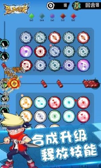 令人敬畏的格斗画面。您可以为每个级别选择更多的忍术,只要在适当的地方使用它,您就可以立于不败之地,通过关卡后,还将要求您选择一些项目。多名忍者大师同场竞技,运用策略以及技巧搭配忍具,抽卡合成升级,不同的忍具释放不同的技能!享受与他人竞技策略的乐趣吧!