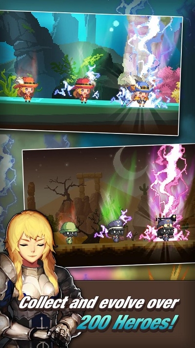 2、畅玩6个独特的类型和招聘超过200个独特的英雄,每一个都有自己的强项上的像素化战场。