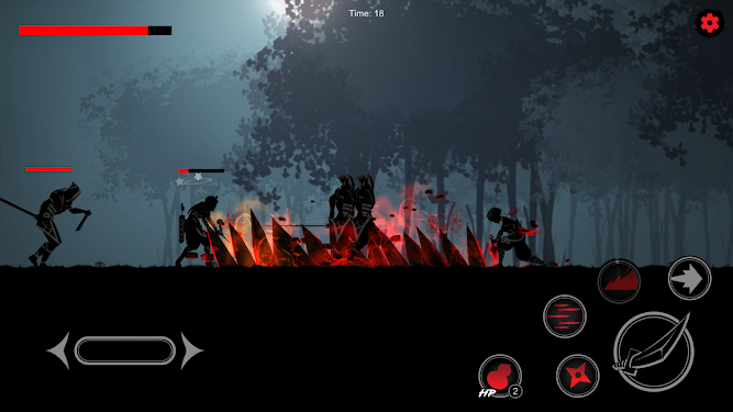 3、操纵忍者角色,简单虚拟操纵杆控件可以解锁不同的技能,以及不同类型的武器,道具,设备和游戏中真正的刺激感。