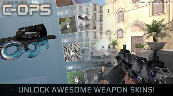 玩家可以从警察以及恐怖分子中选择其中一阵营,然后在复杂且广阔的战场上展开火拼对战。当然作为一款枪械主题游戏,本作的众多类型枪械选择能够让你的战术打法变得多样化。玩家在游戏中要使用虚拟摇杆进行移动,并配合按键进行操作。游戏中有多款枪支出现,供玩家随意换取。