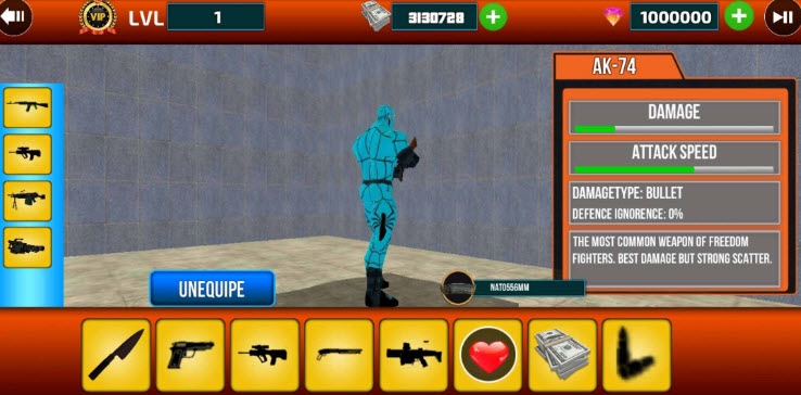 游戏中的战斗方式主要以射击的方式为主,玩家将操作火柴人进行紧密的射击的战斗;