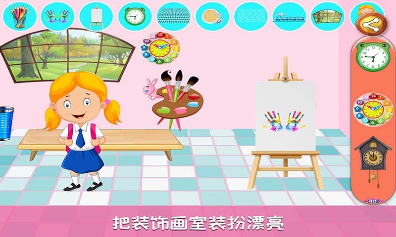 1、在迷你我的公主保姆游戏中,一起走进校园生活,和其他的小朋友一起玩耍;