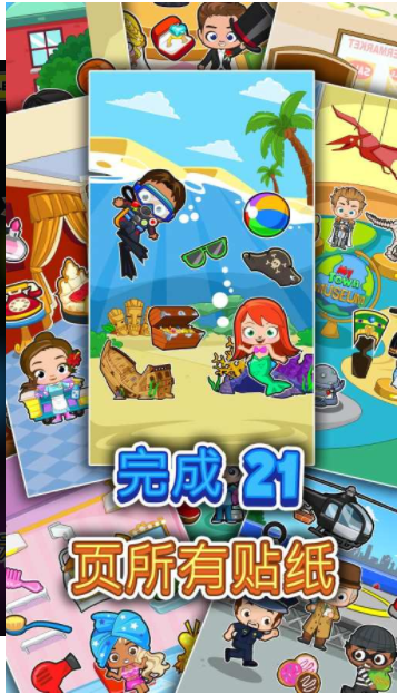 我的小镇:贴纸书是一款专门为孩子设计的休闲教育之旅。垂直绘制成千上万个不同形状的精美贴纸。我的小镇贴纸书游戏每天都有不同的小说主题专辑。来收集自己喜欢的贴纸和朋友炫耀,收集大量酷炫的贴纸,完成所有21页的相册,每天获得免费的贴纸包和惊喜,和朋友交换和交易贴纸。能重现MyTown游戏的主题吗?一定要每天回来拿个免费的贴纸包。这些贴纸可以帮助你完成相册,重现主题。