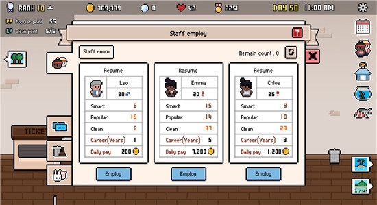 游戏采用经典的8位像素风格的画风,主要是玩法是在城市中运营一个巨大的水族馆,我们要尽心尽力的满足所有的客人的需求,让游客们更愿意在你这个水族馆消费。