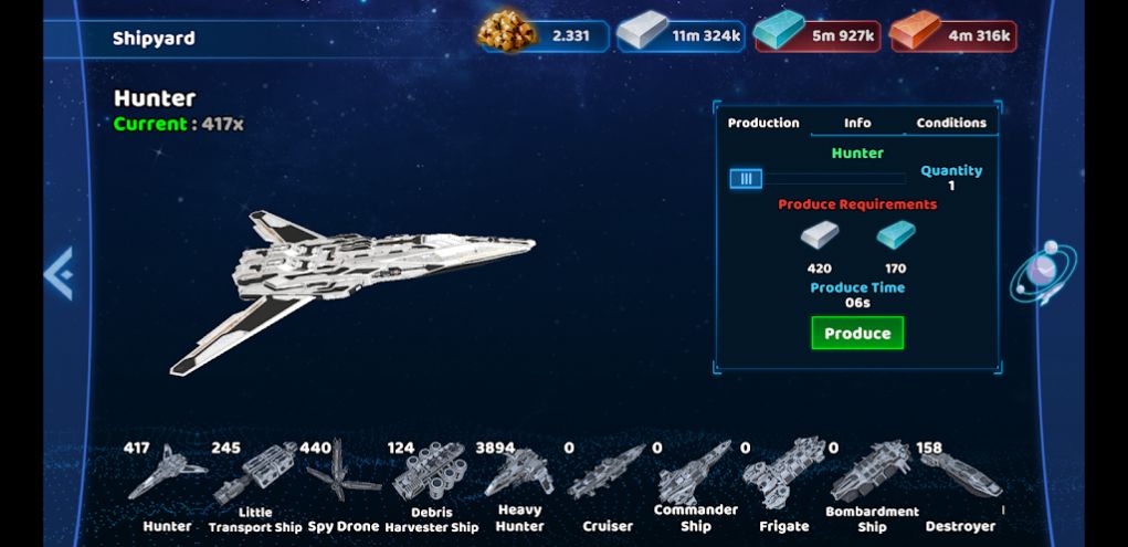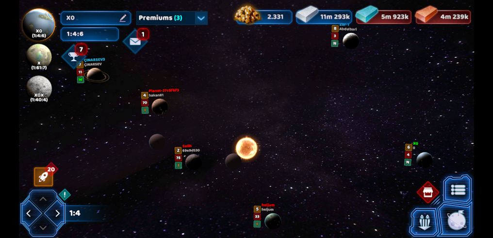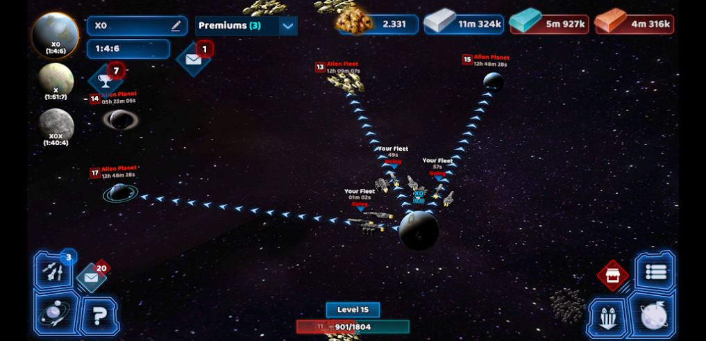 2、发展武器飞船,收集寻找探索更多奇幻的星球,去研究资源高科技矿石。