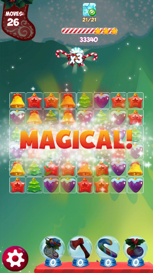 圣诞益智比赛作为一款节日元素非常丰富的消除游戏,经典的三消玩法玩家很轻松的就能上手掌握,里面的关卡非常多每关需要完成的各种挑战也各不相同,而且每关获取到的最终评分都会排在排行榜上,快来和你的小伙伴一起比拼自己的操作吧,合理的使用各种不同的道具进行交换可以为你带来意想不到的特殊效果,里面还有很多的特殊语音和炫酷特效等着你来不断解锁,喜欢的小伙伴可千万别错过。