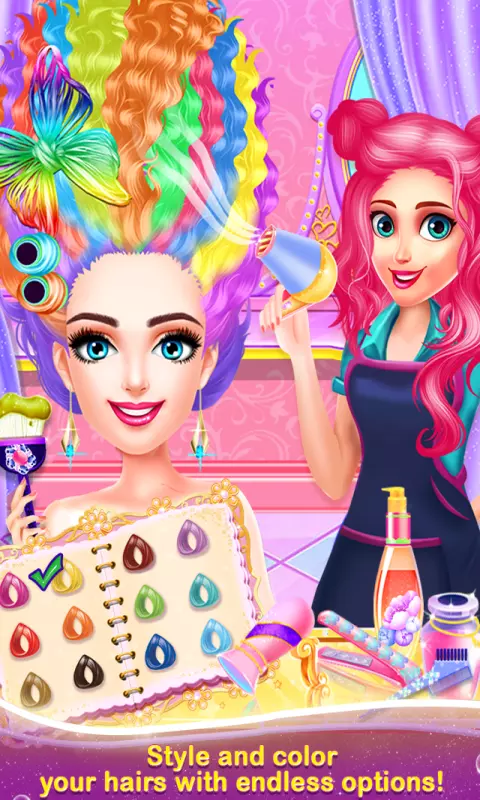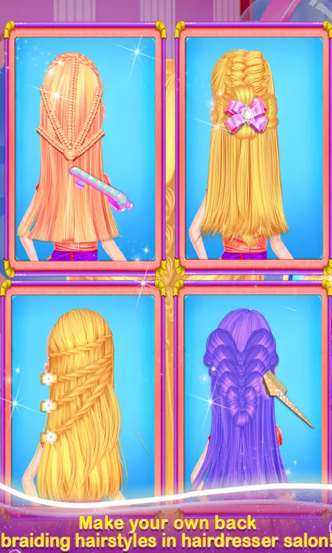 一款偏向妹子的休闲手游,创意性的游戏玩法给你真实的生活经验,年轻女孩可以选择带辫子的粗而扭曲的侧辫,需要的是纹理喷雾波比别针和头发弹性让我们可以在女孩洗礼和化妆沙龙游戏中清洗和染色编织的发型。