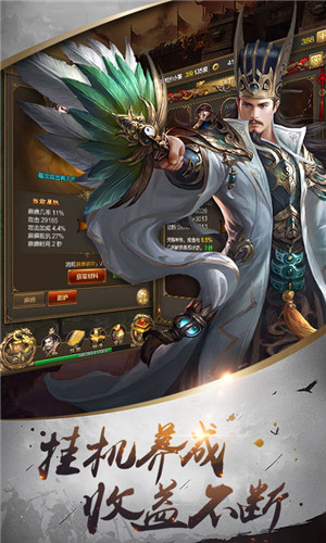 2、轻松挂机玩法,武将自行发育,推图打怪爆装备,等级快速提升!