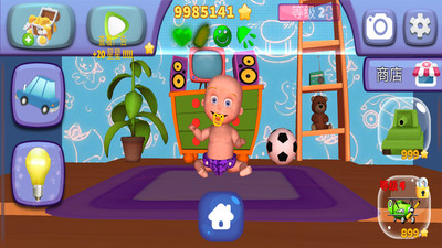 如果你细心妥善地照料你的宝宝,你将会赢得金色星星作为奖励,多收集一些,你可以用它们买衣服、玩具、食品......这样你将会拥有一个世界上最快乐的宝宝!与他/她一起玩耍同时看他一点点长大!你可以用下方的箭头来把宝宝带到不同的房间去,点击或拖拽道具就能使用它们。一切都非常的简单并且直观!
