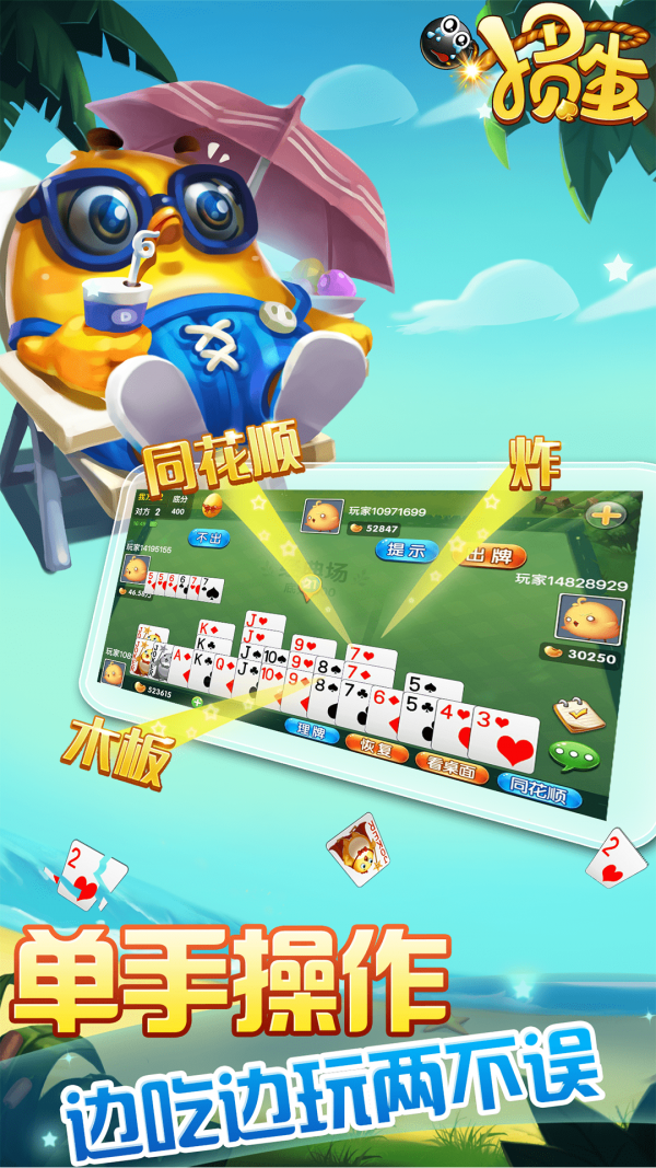 特有的选牌、理牌功能,同花顺一键选择,完善流畅的出牌提示。