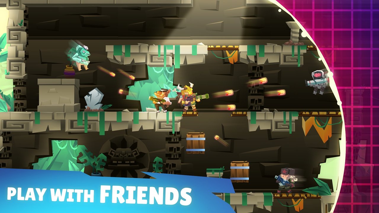 有趣且快节奏的2DRoyalePlatformer-这是为移动设备而打造的BattleRoyale。与您的朋友一起玩并参加排名比赛,升级武器以解锁新的武器能力,并攀升排行榜,成为最好的!
