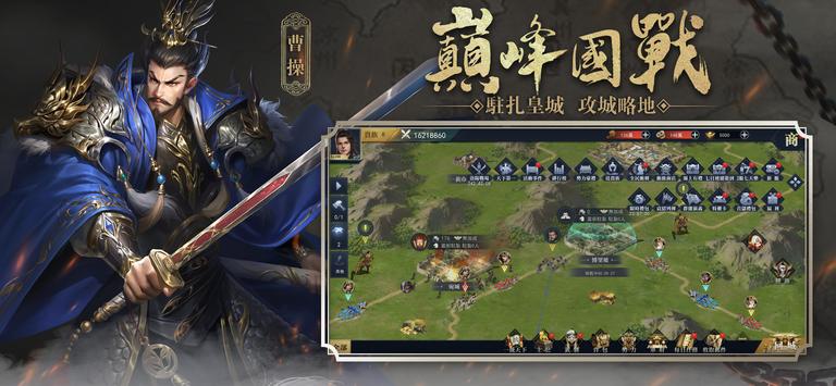 国战经典玩法,攻城略地,大展宏图!新增战役玩法,极致还原三国经典史诗战争!武将养成,各路豪杰,均招揽麾下!粮仓银库,建设国家,招兵买马,挥戈中原!超大地图,多重城池,各类武将的技能组合重回策略游戏本质,让玩家真正能做到以谋略定天下。