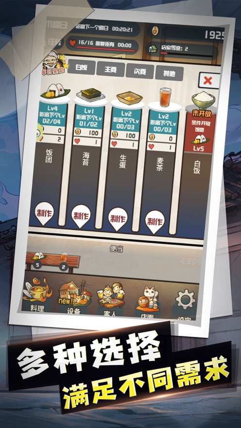2、最吸引人的是解锁各种各样的菜谱,经过精心研发的食谱是餐厅人气的保障;