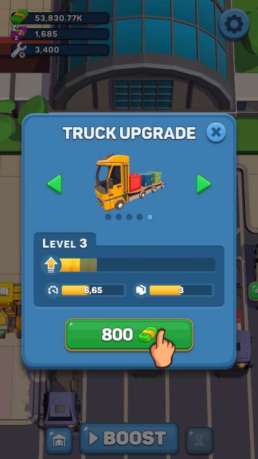 6.成为大亨,成功包装好第一批货物后,您就可以升级您的车辆,因为它不仅是一个闲置的建筑商游戏,而且还是物流大亨;
