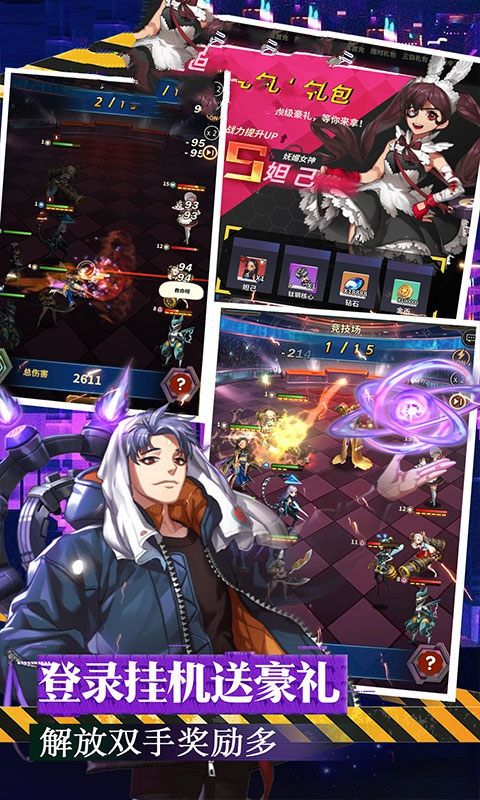 1.轻松组队挂机PK,体验原创故事线上对战,无限放置卡牌策略玩起来很刺激。