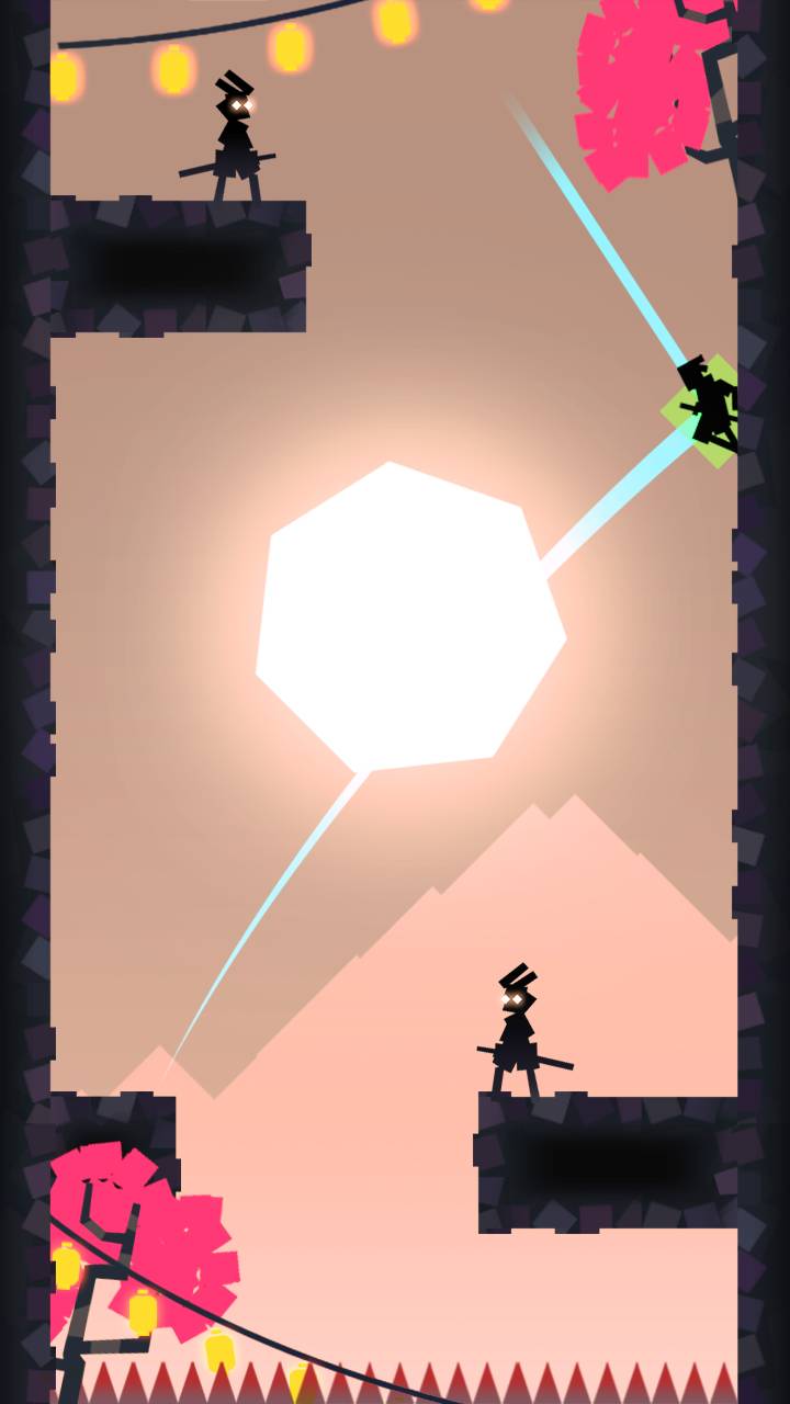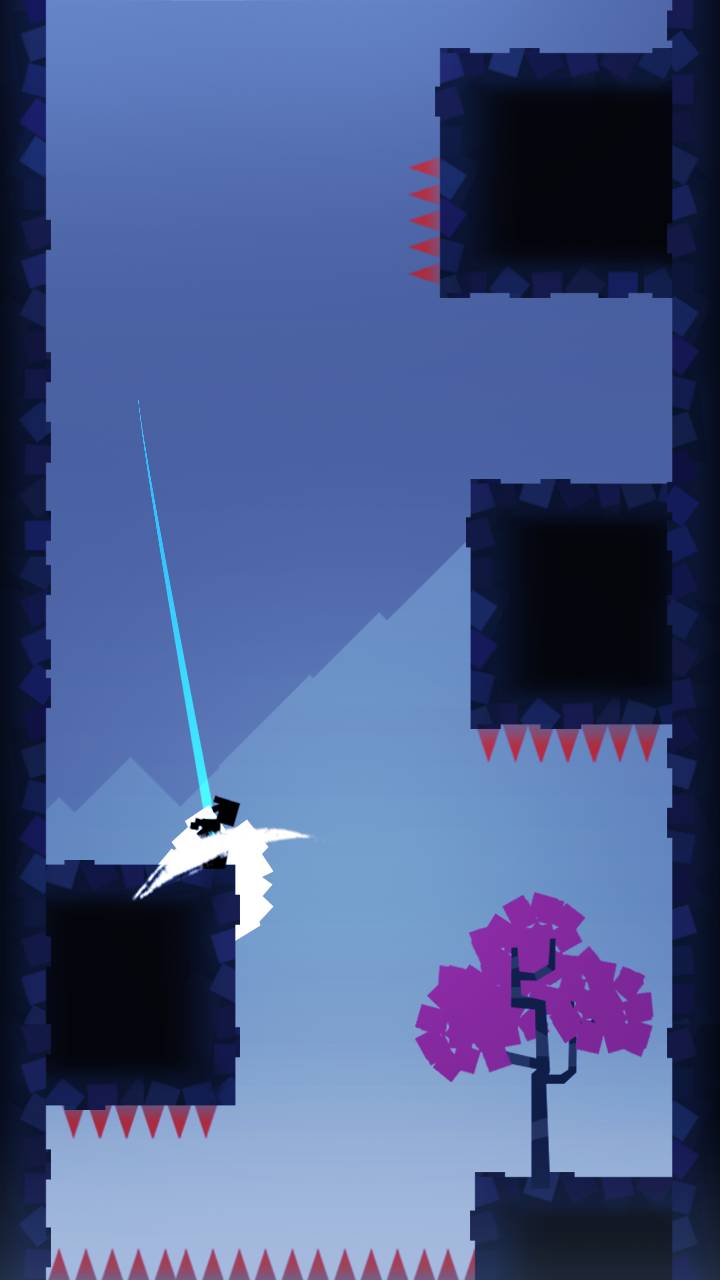 使用点击和拖动来集中忍者的跳跃,释放手指后您的忍者会跳跃天空。有些墙面和地面上会有钉子,所以安全瞄准没有钉子的墙面或地面。跳在墙面或地面将会自动粘在地位;重复跳跃动作来提高您的技术。