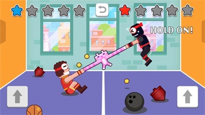 3.玩家需要不停的点,可以控制自己的角色,并把对手拉过线。