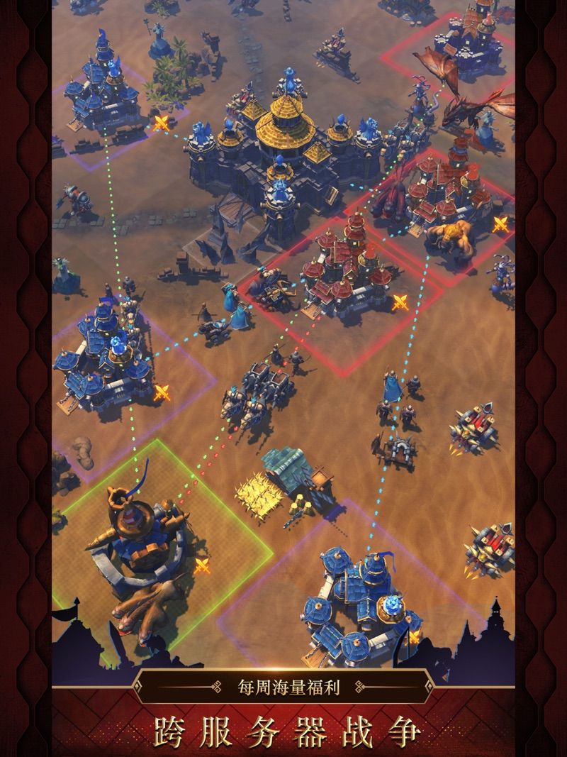 1、从组队共同讨伐巨型BOSS,占领城邦,到跨服联盟联赛,每周都有大量跨服战争活动上线;