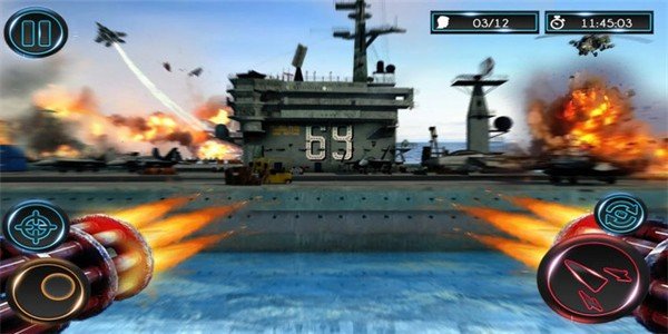 在这个热血刺激的海上战场中执行你的终极任务,你的目的就是需要摧毁敌人的海上战舰,驾驶你的直升机在空中进行最后的打击,将战舰上最好的敌人都消灭干净,你可以不断升级各种战斗武器,让你的战斗力更加强大。
