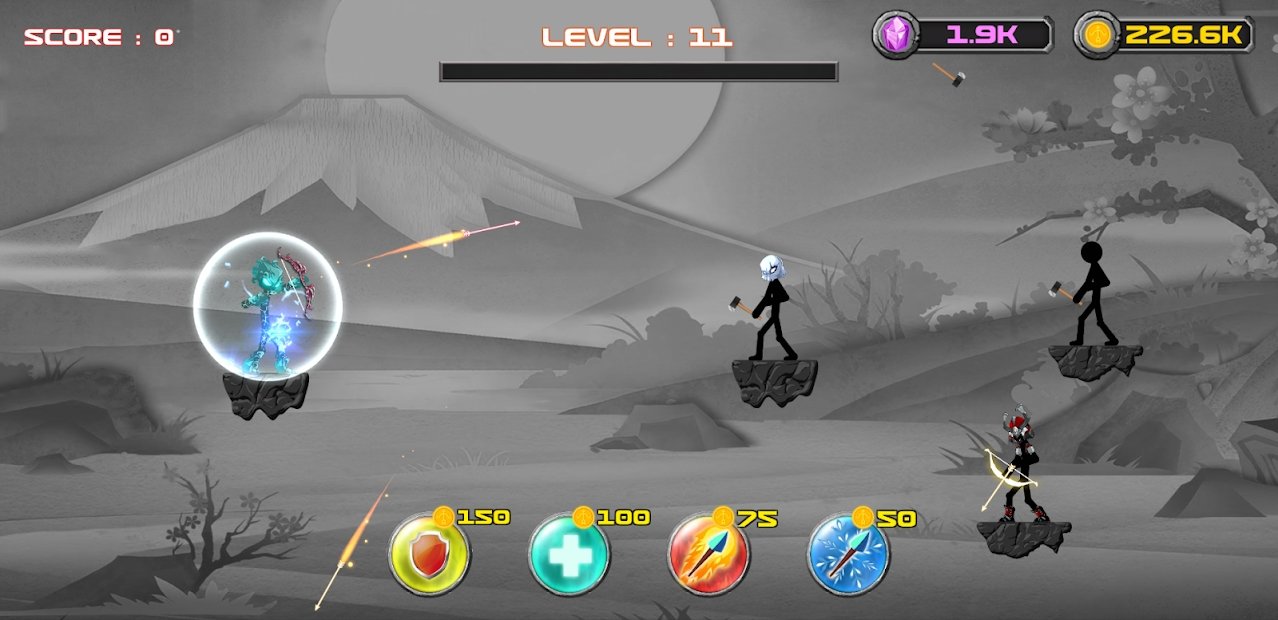 火柴人的弓斧矛作为一个超级受喜爱射击类手游,在游戏里面玩家扮演一个火柴人,而你站在一个平台上,手里拿着弓箭,你需要拉起弓箭瞄准敌人,然后将箭射出来,这个游戏最大的特点是主角和敌人都在一个平台上,没有任何办法可以闪避,就看谁射的准,快来街机中国下载体验吧。
