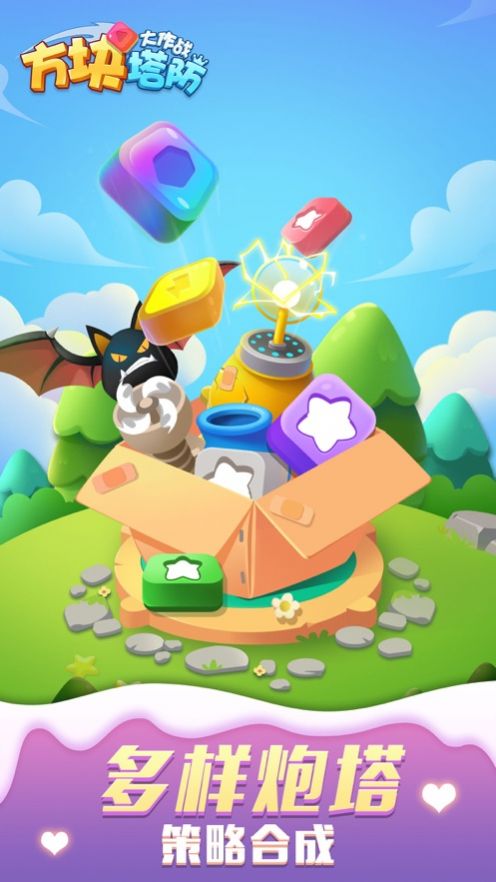 各色的方块可以合成高级防御塔或防御工事,玩具需要通过合理的合成来构筑自己所需要的防御塔或者防御工事,阻挡怪物的侵犯。