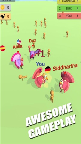 进击的火鸡作为一款以火鸡战斗对决为主题的游戏,趣味创意的游戏玩法方式,多种不同类型的火鸡角色加入你的队伍,超多玩家参与的游戏对决,io游戏规则设定,欢乐刺激的游戏对决,不断升级你的战斗火鸡,新的能力解锁,玩法类型很多,选择最佳的作战方式,策略头脑,对于战场的局势有着自己的判断理解,发掘游戏胜利的办法,思路清晰找寻着成功的秘诀,击败对手,热血战争刺激非凡,击败强敌吧!