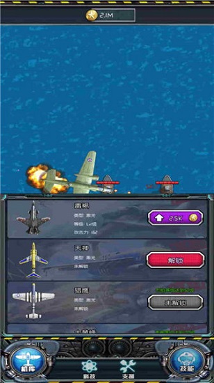 1、升级飞机内部设施以及外部装备,需要注意来自海陆空各个方面的敌人,注意每个小队成员的状况,并且瞄准目的地展开轰炸,你能保证没有人员伤亡的情况下完美完成任务吗?