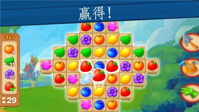 3、不仅有一个简单的种植游戏,玩家还可以通过消除游戏中的迷你游戏来赢得各种奖励和道具,这将帮助您更好地管理和运营这个巨大的农场,使其更加充满活力。