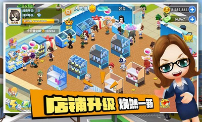 卡通Q版精美的游戏画面,自选装修风格,丰富的游戏元素,各种事物场景模拟在触动你的心,销售系统存储基本的游戏玩法,装修华丽的便利店。