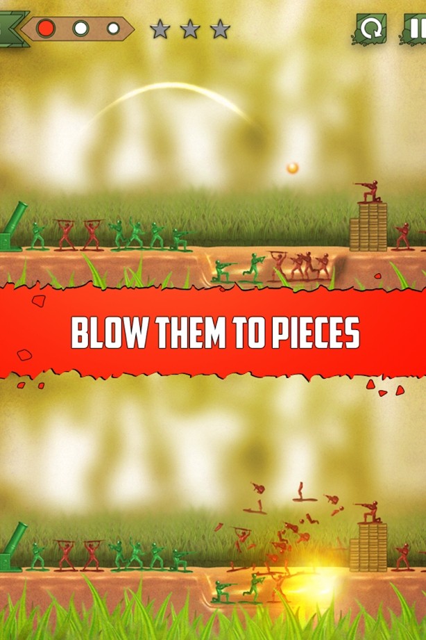 瞄准你的大炮,选择它的口径和拍摄炸毁的小玩具兵成碎片!