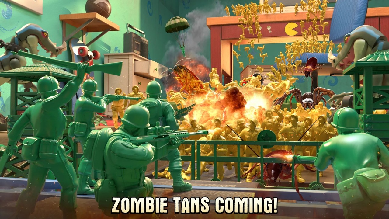 谭军将军通过向世界传播僵尸病毒并释放邪恶的昆虫而带来了启示。该病毒使我们所有的玩具英雄变成了僵尸。然后整个房子掉进了棕褐色。作为绿军的新指挥官,您的职责是消灭邪恶势力,并从黑社会中拯救玩具世界。