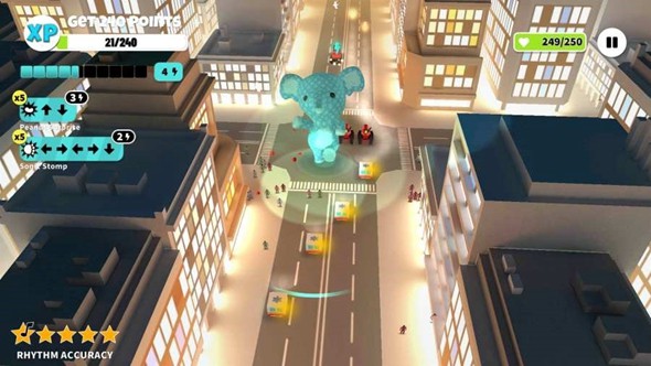 2.玩家需要控制一只呆萌可爱的巨型玩偶公仔进行挑战,独特的节奏玩法让人爱不释手;