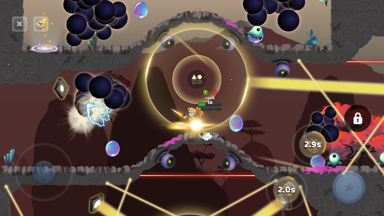 每个角色都具有独特的“破折号”能力:双跳,飞翔,弹跳等等!除了破折号之外,角色还具有2个主动和1个被动能力,使游戏玩法在一个到另一个之间完全独特。所有这些都使平台游戏动作变得敏捷而强大。
