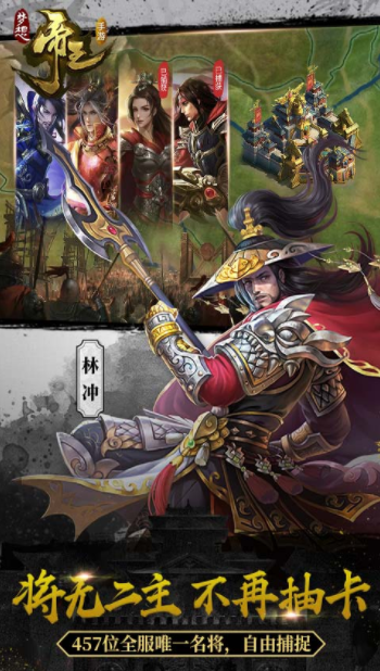 梦想帝王作为一款自由战争策略手游。手游使用了抓捕武将的方法,可以说很有新意。战斗场面精彩,技巧酷炫。核心目标是强国,最终消灭其他五国,策略为王。所有457位历史明星都是“一体化”,先到先得,这游戏的玩法非常的丰富有趣。