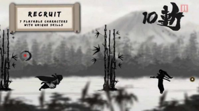 2,水墨画风格的杀戮跑酷,机制包括笔划杀戮,易学难用,要求选手准确把握时机,把握挥拍的方向才能显示出完美的击杀。